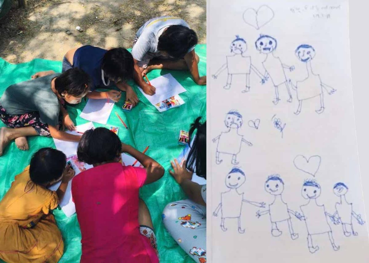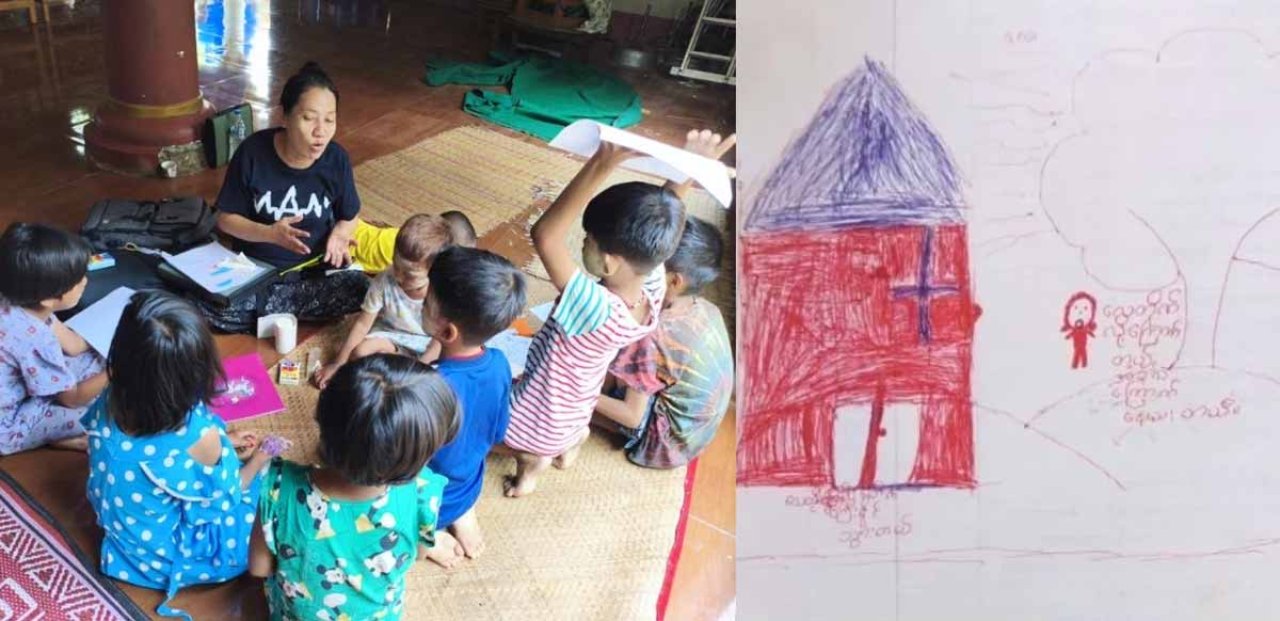 Drawings made by children during mental health support session