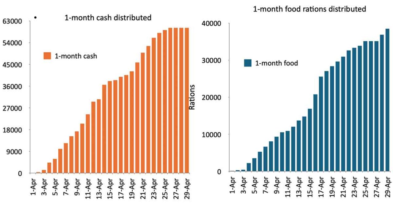 Number of beneficiaries supported with food and cash after the earthquake as of April 29th.
