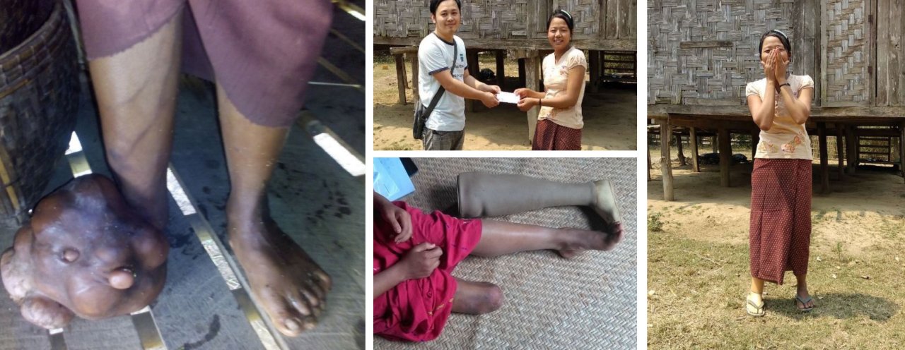 A 20 year old woman, from a remote village in North West Myanmar, was seen by one of the community health workers with a very large swelling on her right foot. The swelling had grown over the past 5 years and the foot had such a bad smell that the girl had to live separately and was in social isolation.