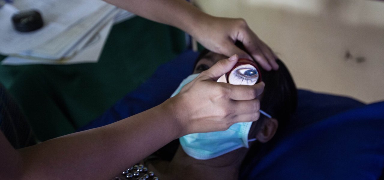 Thi da Aye (31) visits the Tun clinic in Shwe Pyi Thar township for her regular check up, today including an eye examination with Dr Yee.