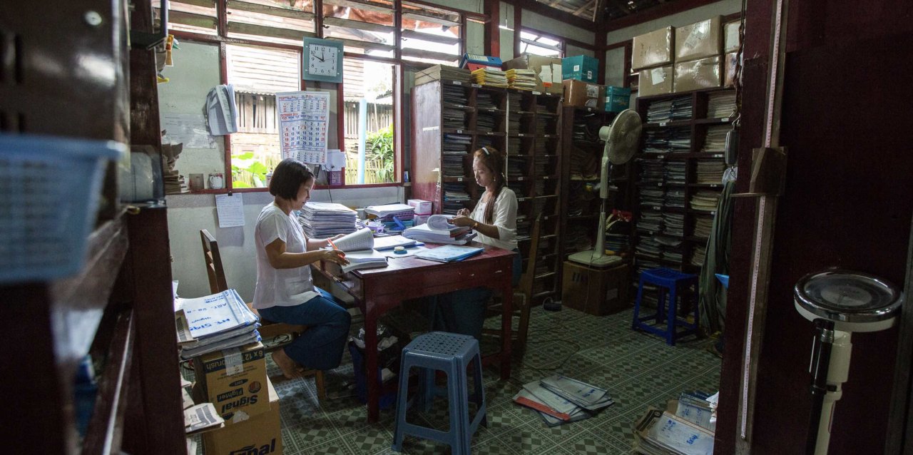 The reception at Thazin clinic, the first of Medical Action Myanmar’s clinics and operational since 1994, provides vital medical services to Hlaing Tha Yar township on the outskirts of Yangon.